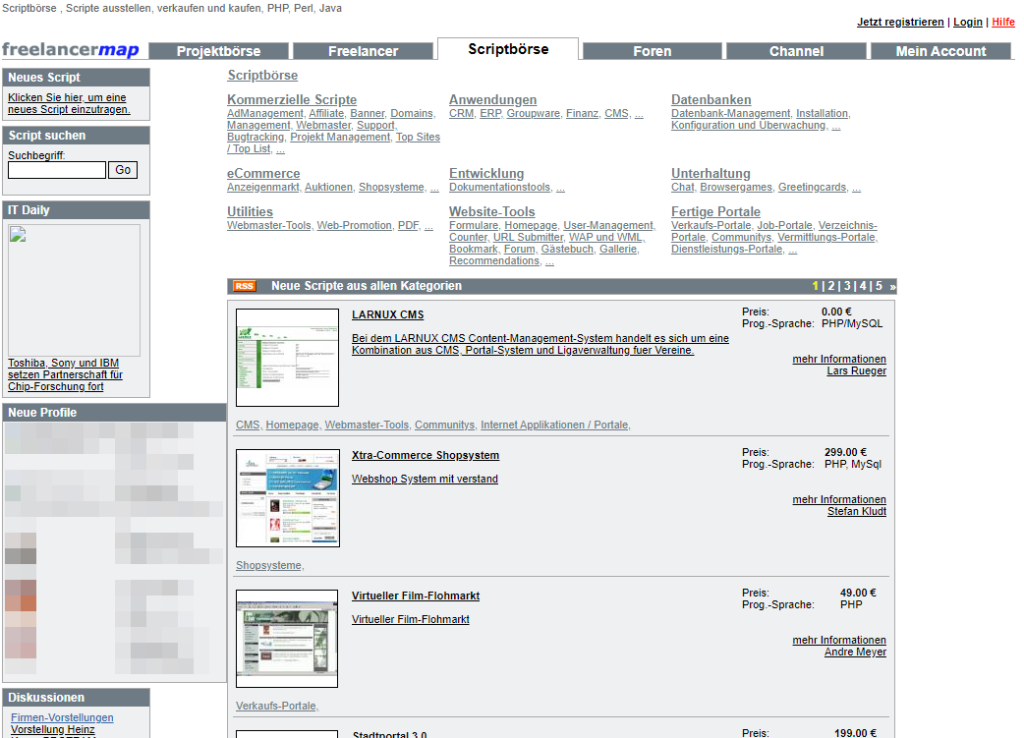 Die freelancermap-Plattform wie sie, zwar nicht in den 90ern, allerdings noch Anfang der 2000er Jahre ausgesehen hat: